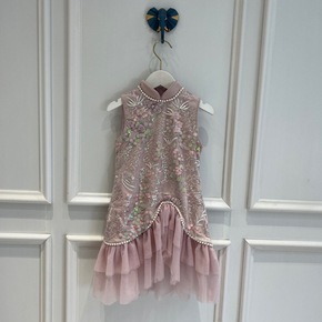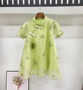 2022夏季新款国风刺绣外纱钉珠盘扣儿童双层旗袍连...