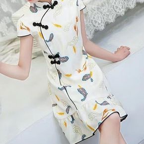 女童旗袍夏季薄款中国风改良中大童小女孩儿童旗袍裙鱼...
