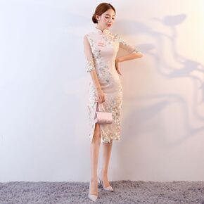 改良版旗袍连衣裙新款中长款修身鱼尾时尚少女旗袍连衣...