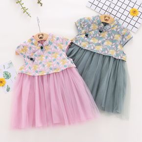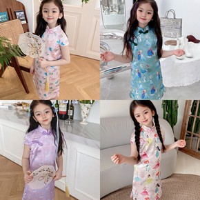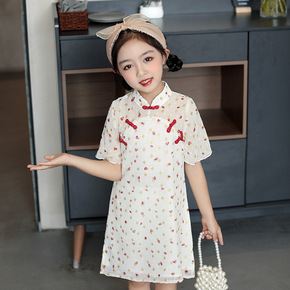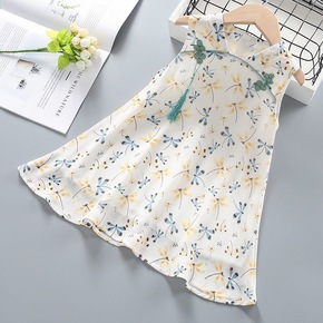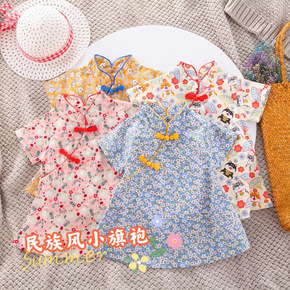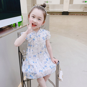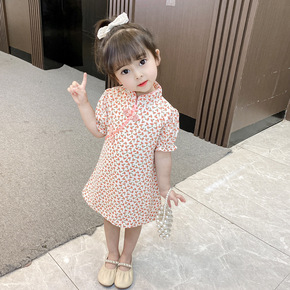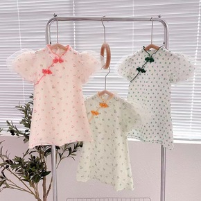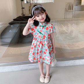 一件代发女童旗袍连衣裙夏季童装碎花盘扣裙子中小童复...