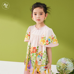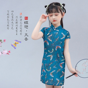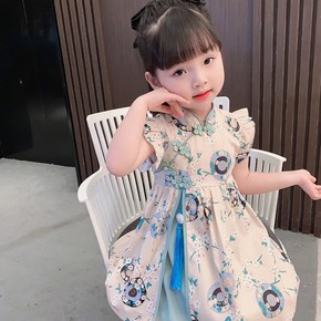 2022夏季新款女童民国晚风旗袍连衣裙女孩飞袖连衣...