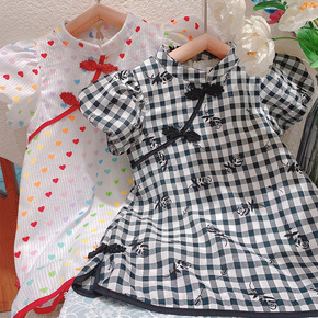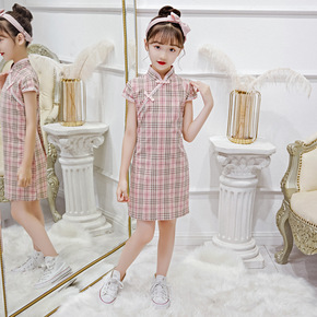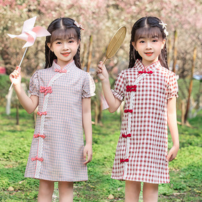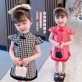 2022女童格子中国风旗袍裙童装洋气夏季儿童泡泡袖...