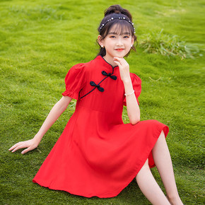 连衣裙儿童新款女童连衣裙夏装2022旗袍裙夏款雪纺...