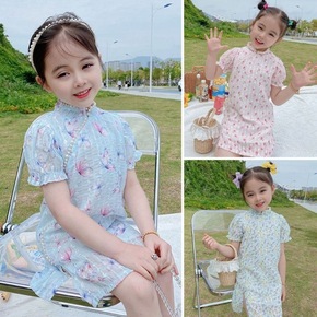 女童韩版花朵短袖旗袍裙2022夏新款中小童名族风裙...