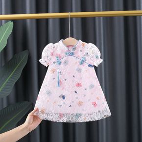 女童雪纺小花旗袍2022夏装新款女宝宝裙子中国风夏...