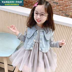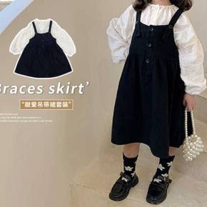 女童连衣裙套装裙春装21新款洋气儿童女孩背带裙泡泡...