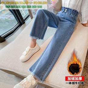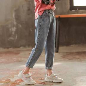 女童牛仔阔腿裤2021秋款洋气时尚儿童裤子中大童1...