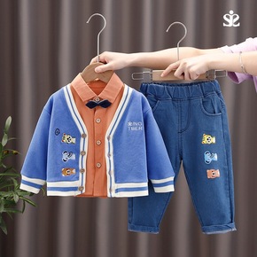 童装春装男童套装2022新款儿童韩版洋气小西装两件...