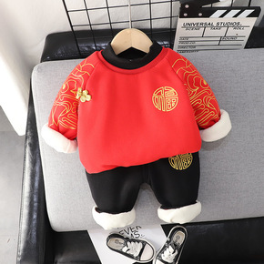 小童加绒加厚童装宝宝红色喜庆童装批发2021冬季新...