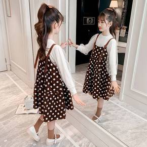 韩国女童秋装洋气圆点裙套装裙2022新款儿童春秋网...