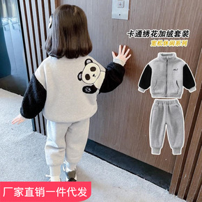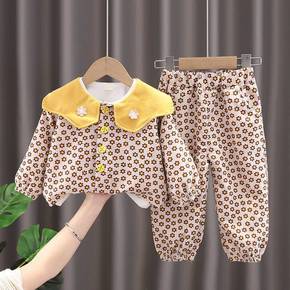 女童加绒套装2021新款女宝宝洋气秋装小童衣服儿童...