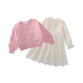 女童套装裙2021新款女宝秋装洋气针织开衫连衣裙两...