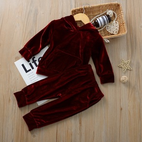 2019年儿童套装连帽金丝绒长袖秋冬款可爱兔耳朵帽...