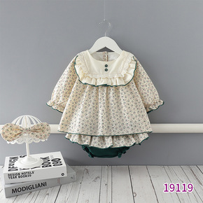 天静童装2021年春秋新款印花裙套装 可爱碎花学...