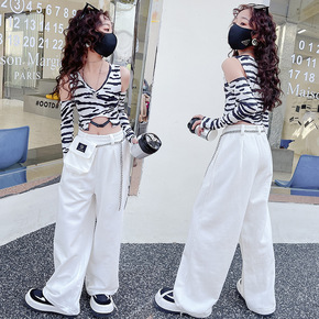 童套装2021秋季新款韩版女童中大童时尚撞色拉条美...