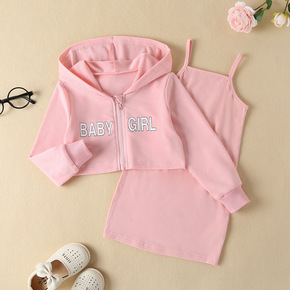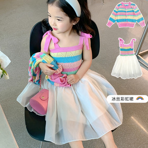 女童夏季新款童装儿童条纹针织开衫外套中小童吊带连衣...