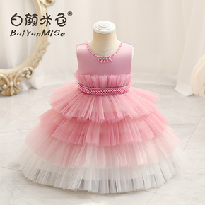 跨境童装儿童礼服拼色公主裙女婴儿宝宝周岁生日宴会裙...