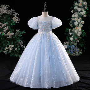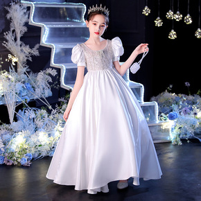 儿童礼服公主裙洋气晚礼服走秀主持演出服钢琴演奏白色...