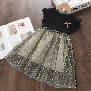 连衣裙夏装女宝宝拼接蓬蓬裙子蝴蝶结超仙洋气女孩星星...