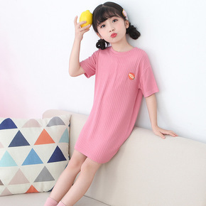 儿童连衣裙弹力家居服女生女女童糖果色垂坠感冰感夏季...