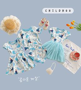 MS22112夏季新品卡通公主直喷印花女童连衣裙网...