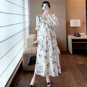 孕妇装新款孕妇夏天时尚外出哺乳中长款甜美减龄温柔孕...