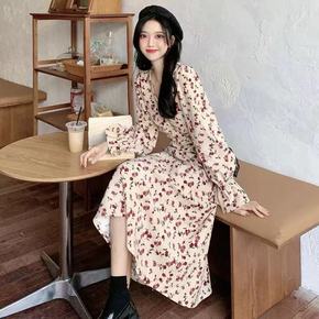 法式气质温柔风长袖碎花连衣裙女2021秋装新款甜美...