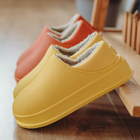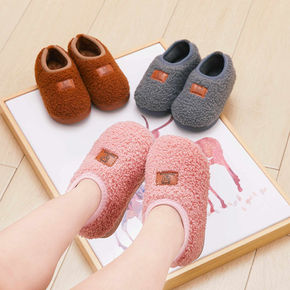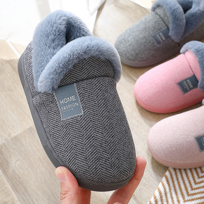 厂家直销冬季情侣家居棉鞋亲子休闲纯色包跟居家保暖防...