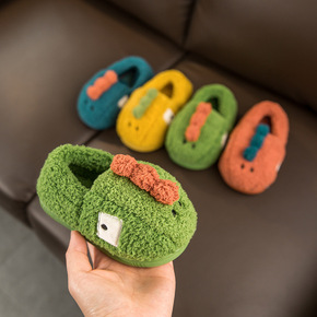 宝宝拖鞋男童冬季包跟防滑保暖室内家居鞋儿童恐龙棉拖...
