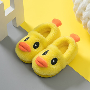 儿童棉拖鞋包跟防滑保暖可爱小黄鸭毛绒拖鞋居家女男童...