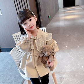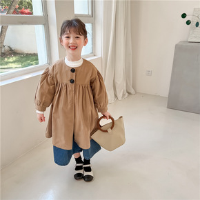 女宝宝2022春秋款外套女童泡泡袖风衣韩版童装儿童...