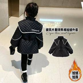 女童冬装棉服2022新款女宝宝洋气复古翻领棉衣儿童...