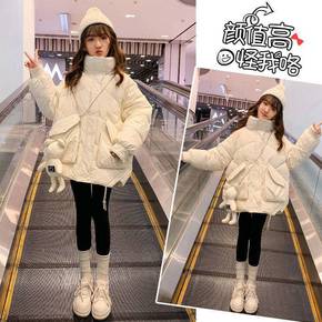 学院风羽绒棉服女中长款2021年冬新款初高中学生加...
