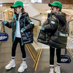 包邮女童棉袄冬装2021年新款亮面免洗外套中长款洋...