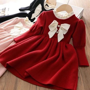 秋冬女童小香风针织衫外套毛线半身百褶裙两件套洋气针...