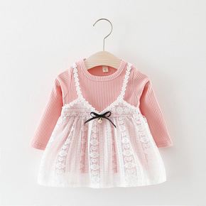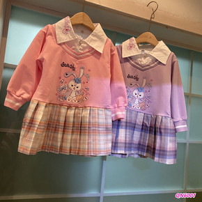 春新款~儿童印花假两件翻领卫衣连衣裙 一件代发 Q...