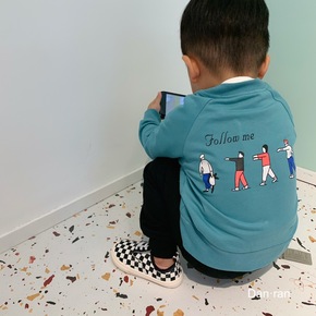 0305y7一件代发秋冬新款儿童袖子拼色款字母印花...