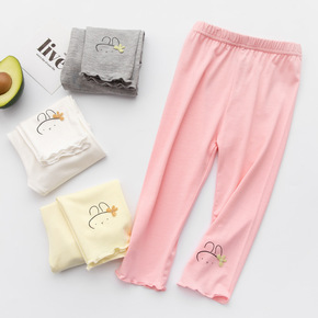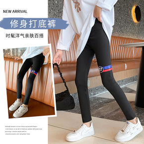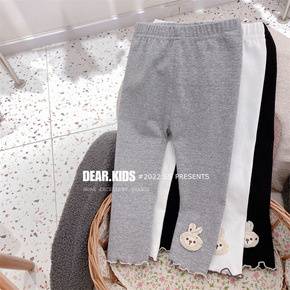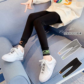 女童打底裤春2022新款韩版桔绿字母儿童长裤春款中...