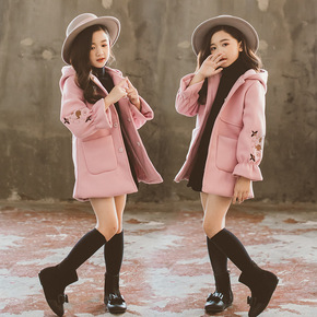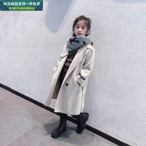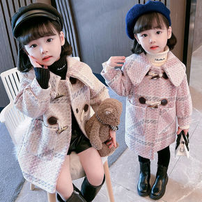 女童外套冬季新款韩版童装女童羊角扣中长款呢子大衣冬...