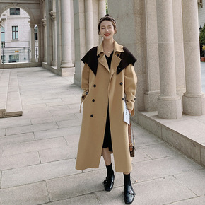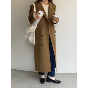 现货2021新款女式双排扣毛呢外套女女士呢子大衣...