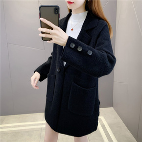 女式毛呢外套2021秋冬新款针织开衫气质通勤宽松型...