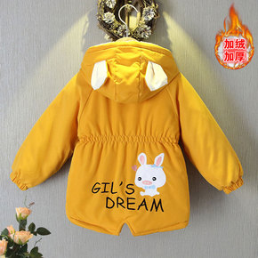 女童加绒外套2021秋冬新款儿童装夹棉加厚中长款洋...