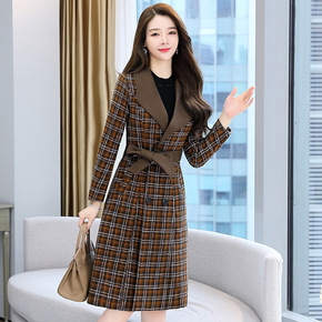 毛呢外套2021冬季新品女装韩版修身时尚格子女式呢...