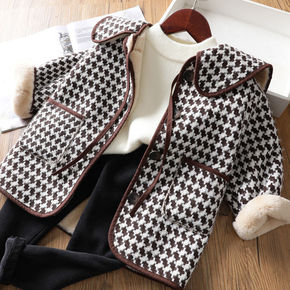 仿双面呢女式外套2021秋冬新款翻领千鸟格针织开衫...