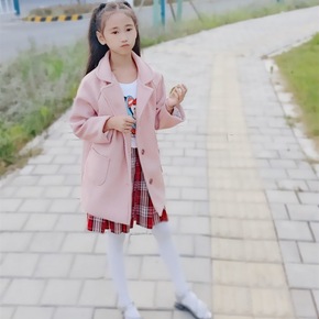 秋季冬款男女童呢大衣呢子上衣弹力儿童风衣可爱韩版女...