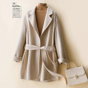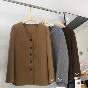 女式大衣外套双面呢高档女装季新款 韩版单排扣羊绒大...