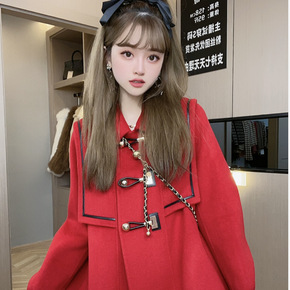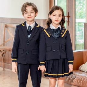 幼儿园园服校服套装呢大衣秋冬装海军风中小学生呢子大...
