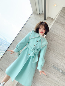 19150新款秋冬夹棉呢大衣洋气甜美公主宝宝上衣...