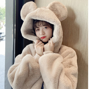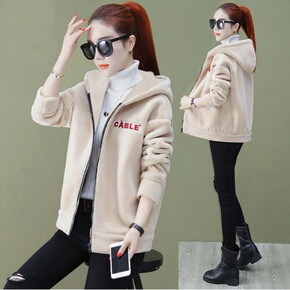 羊羔绒外套带帽个性女2021新款秋冬女式时尚加绒加...