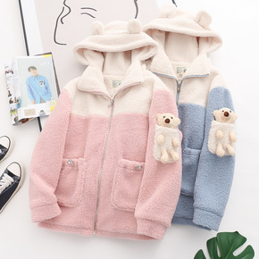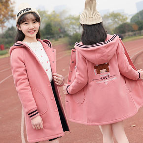 初中学生冬天加绒外套少女加厚卫衣外套学院风学生中长...